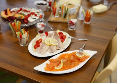 - Wenig Fleisch: Um den ökologischen Fußabdruck zu reduzieren, soll die Jause überwiegend vegetarisch sein. Fleisch sollte nur in geringem Maße und wenn möglich aus biologischer und artgerechter Haltung verwendet werden.